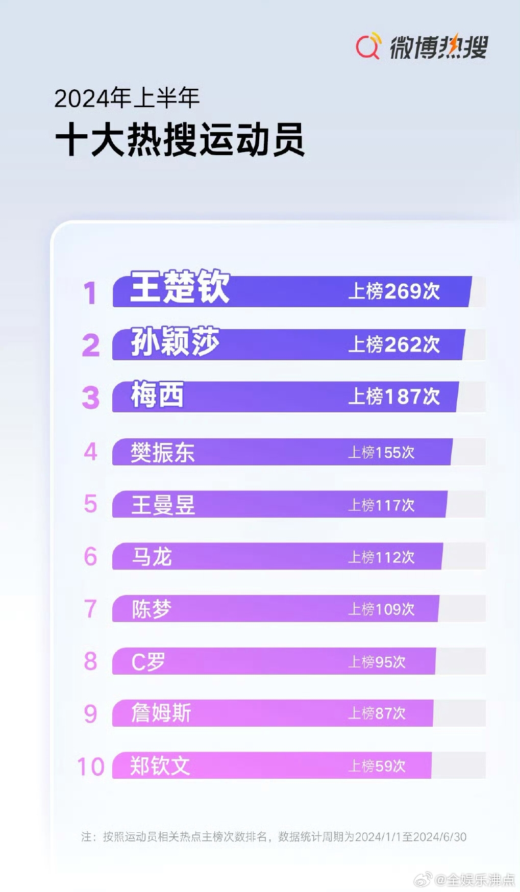 2024年微博十大热搜运动员:乒乓球7席&占据前3,足篮无人上榜