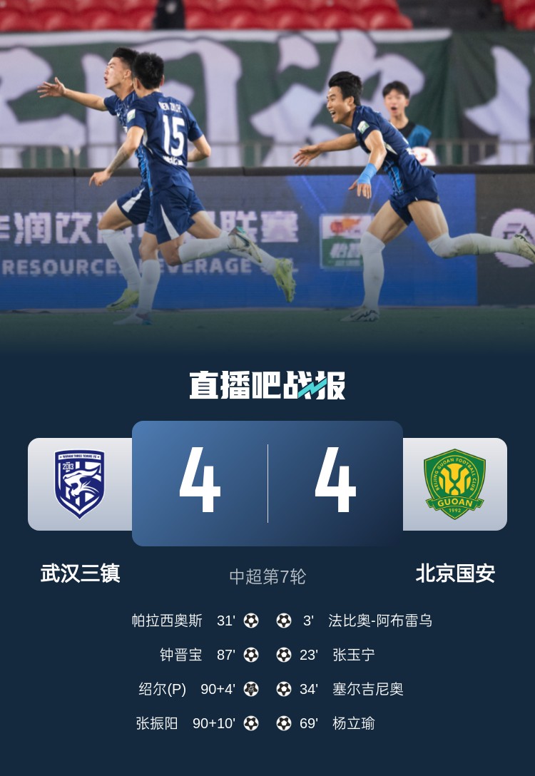 从4-1到4-4,三镇值得钦佩,塞蒂恩急需总结。上半场给人感觉,国安可以“随心所欲”,俨然“巴萨附体”。下半场邓卓翔派上达兰,梳理中场,压制节奏。左路陈哲超开始冲击王刚,右路开始打林良铭身后,收到成效。必须说,4-1领先,国安有点松懈,但也是三镇的不屈和韧劲,让他们抢到这1分。邓卓翔真不错?!塞蒂恩这样的打法和调整,周末有点难啊。